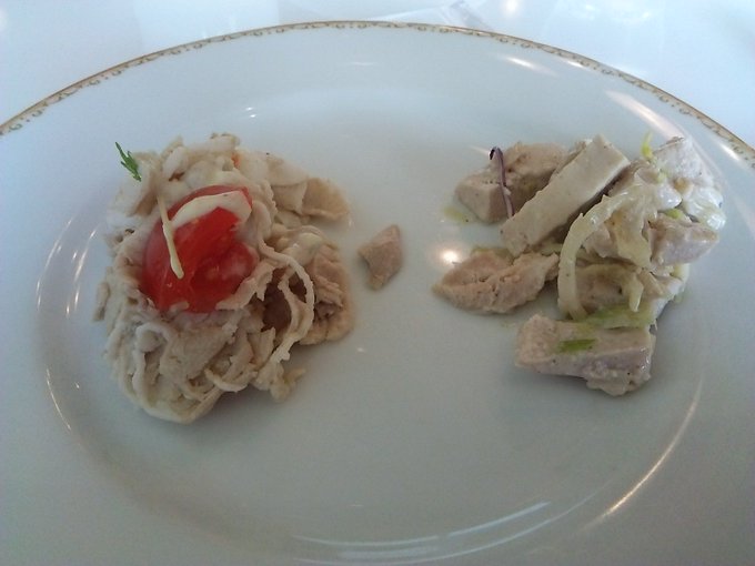 - チキンとキャベツのサラダ ポルチーニソース、ポークとトマトのサラダ わさびヴィネグレット pic.twitter.com/BXaoOBNFLs posted at 12:29:08