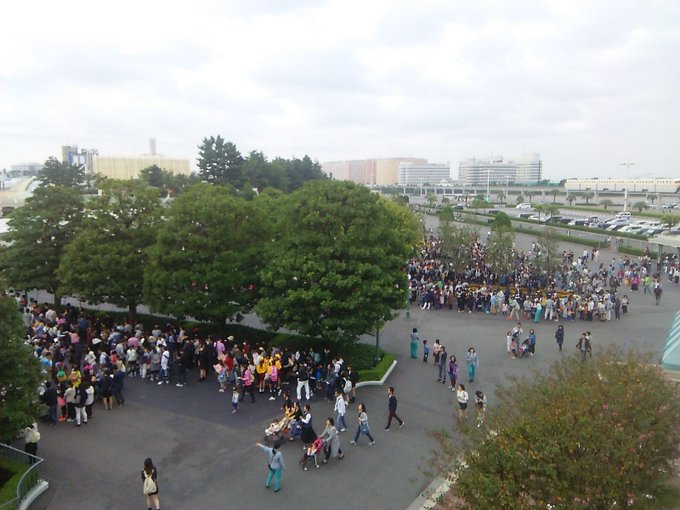 - 開園待ちは植え込みの最後あたり。溢れかえるほどではないワケで、いわば普通の週末。 #TokyoDisneyLand posted at 07:48:14